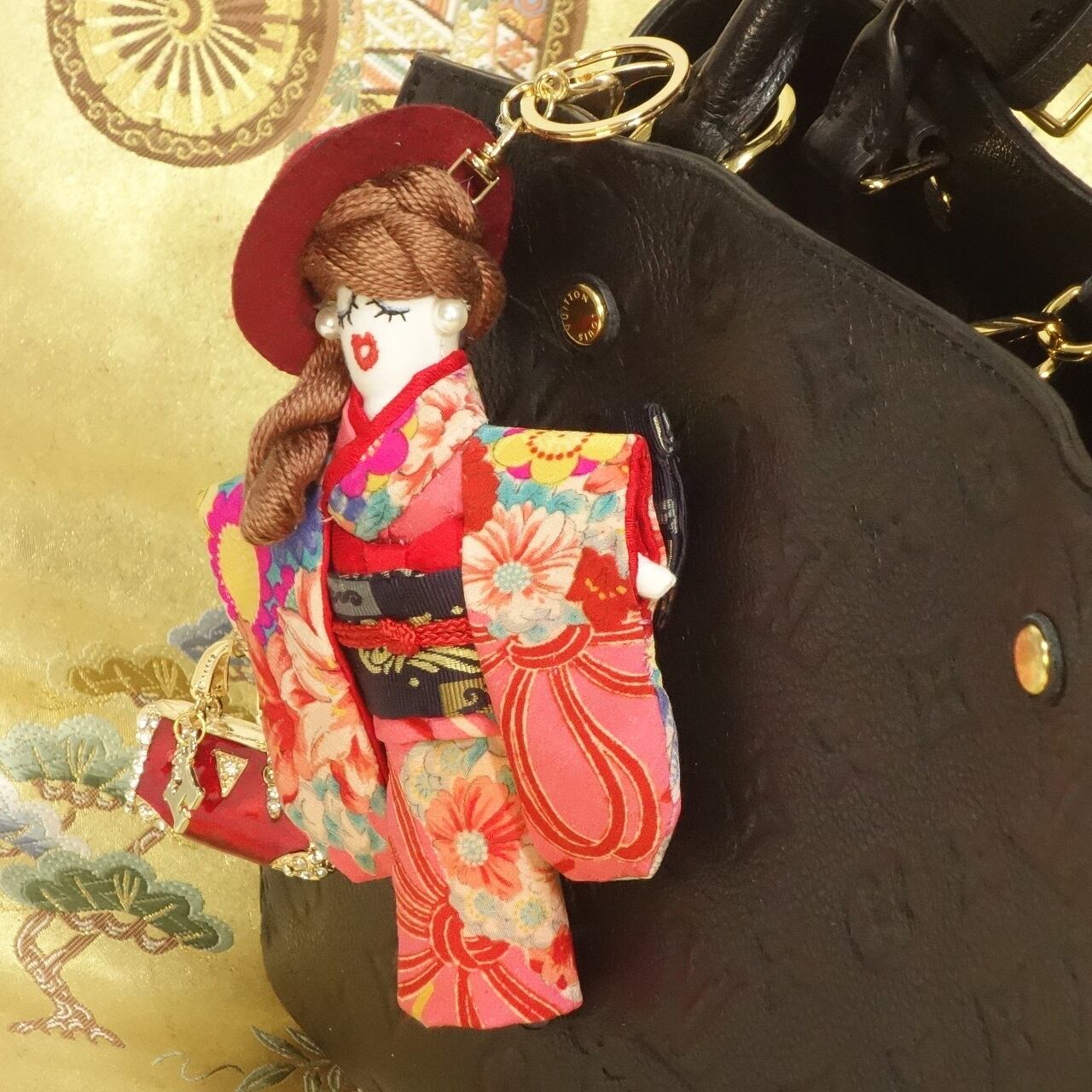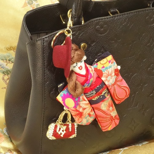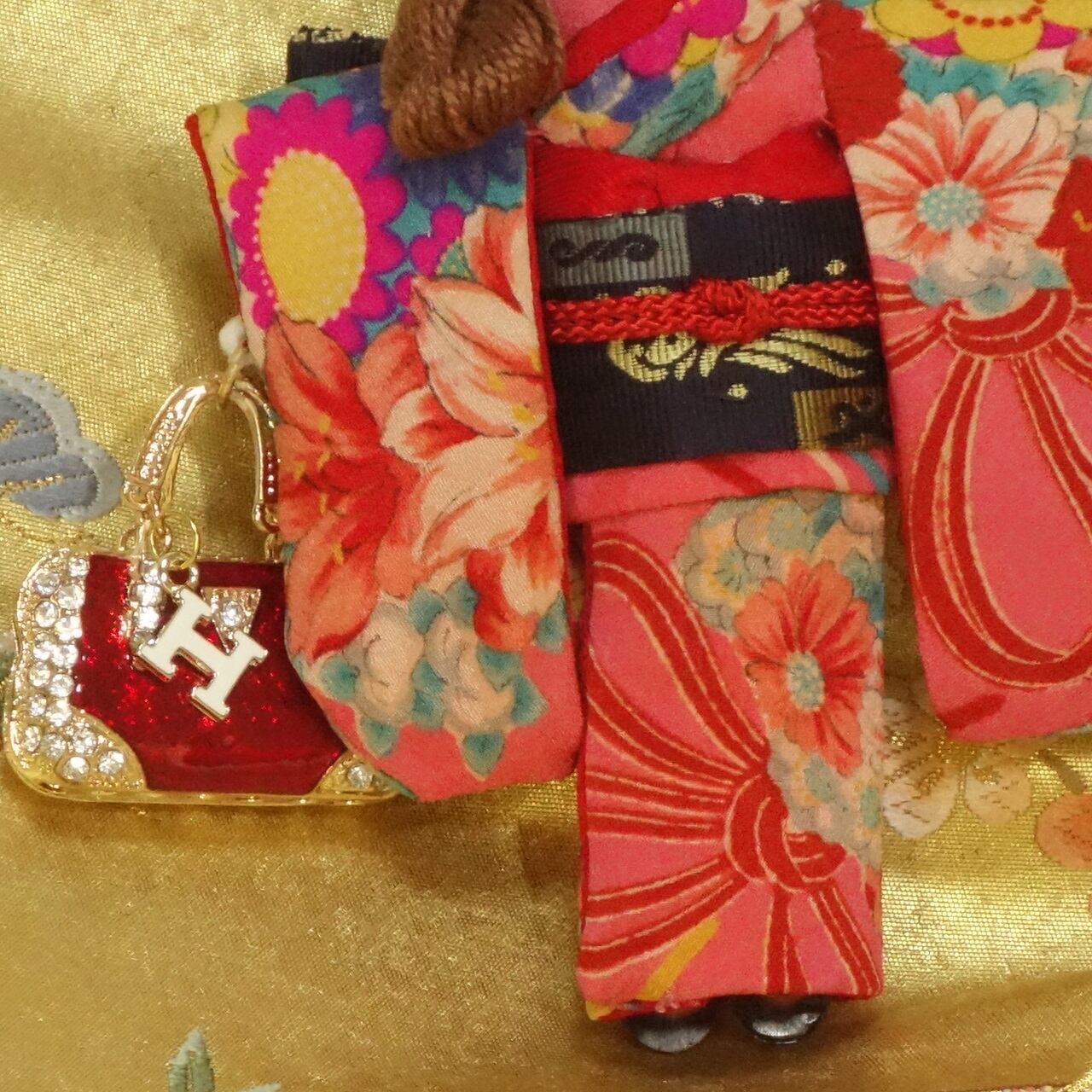 着物は紋錦紗縮緬の正絹古布を使用し手縫いで作成しています。