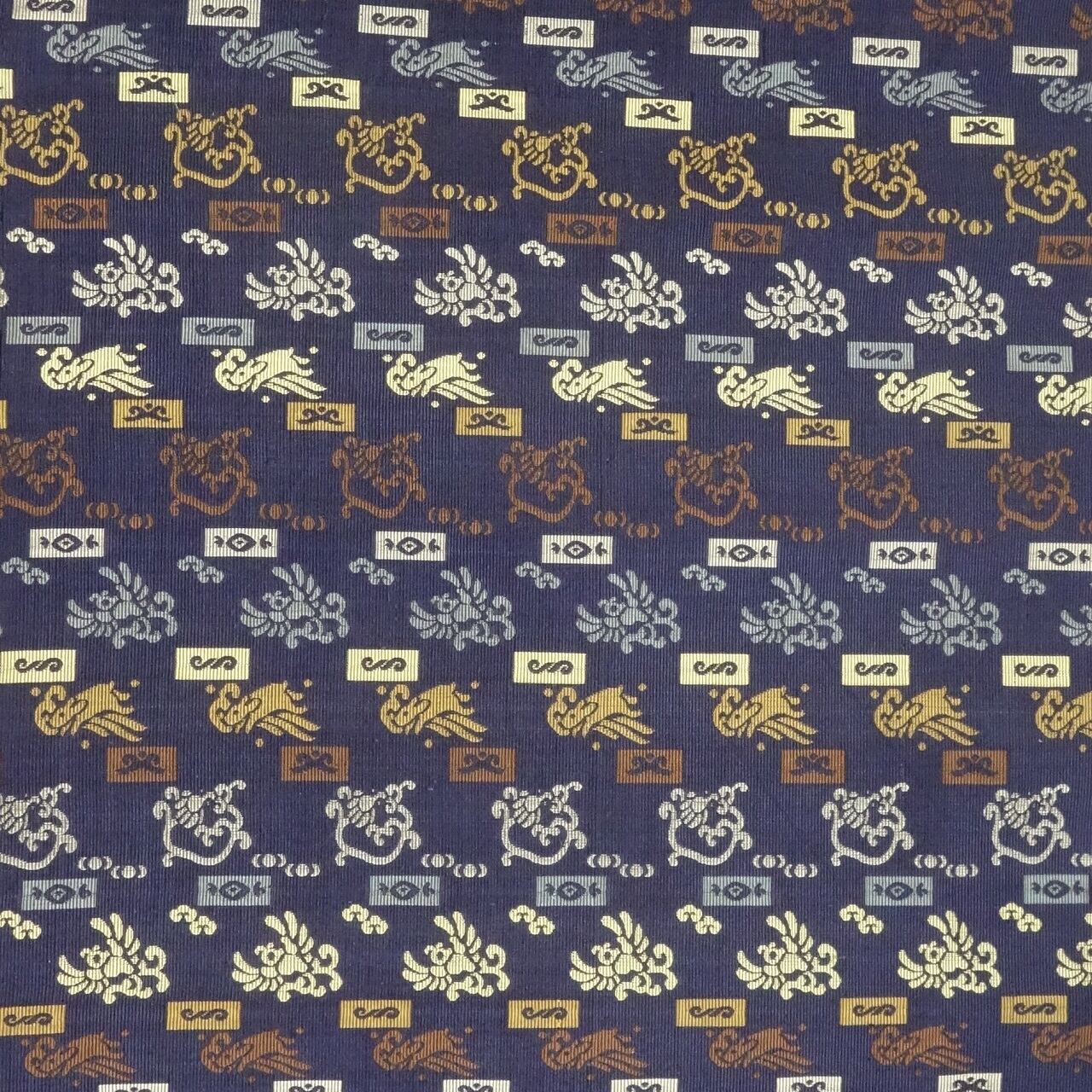 帯は紺地にうさぎや鳳凰が描かれた大正時代の帯地を使用しています。