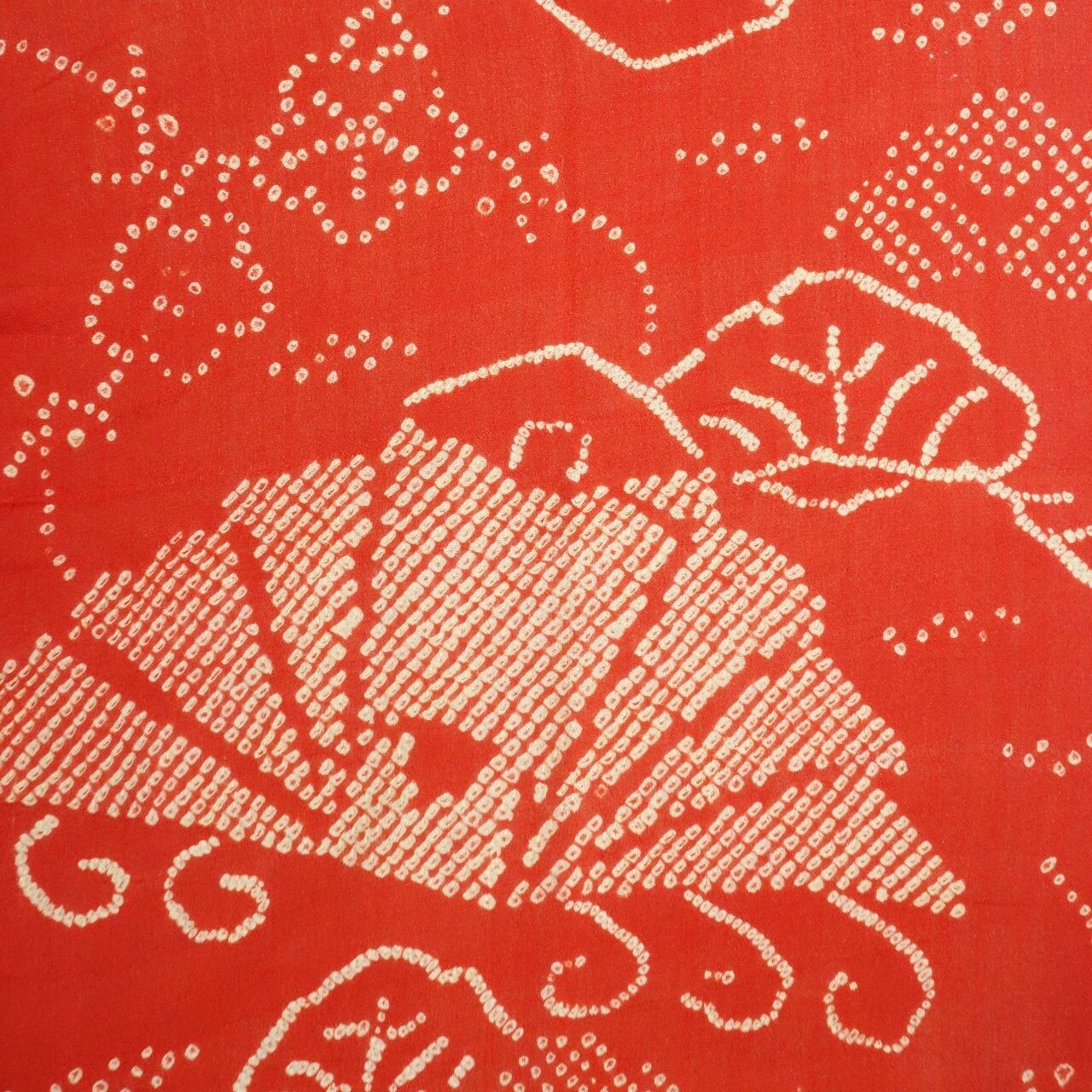 赤地に熨斗、松や梅の鹿の子絞りです。