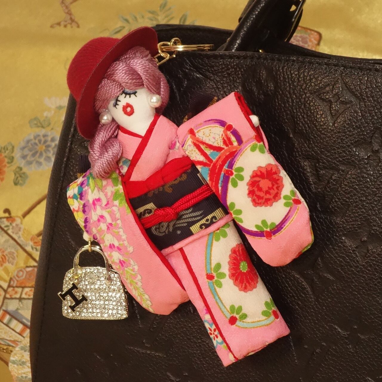 着物は紋錦紗縮緬の正絹古布を使用し手縫いで作成しています。