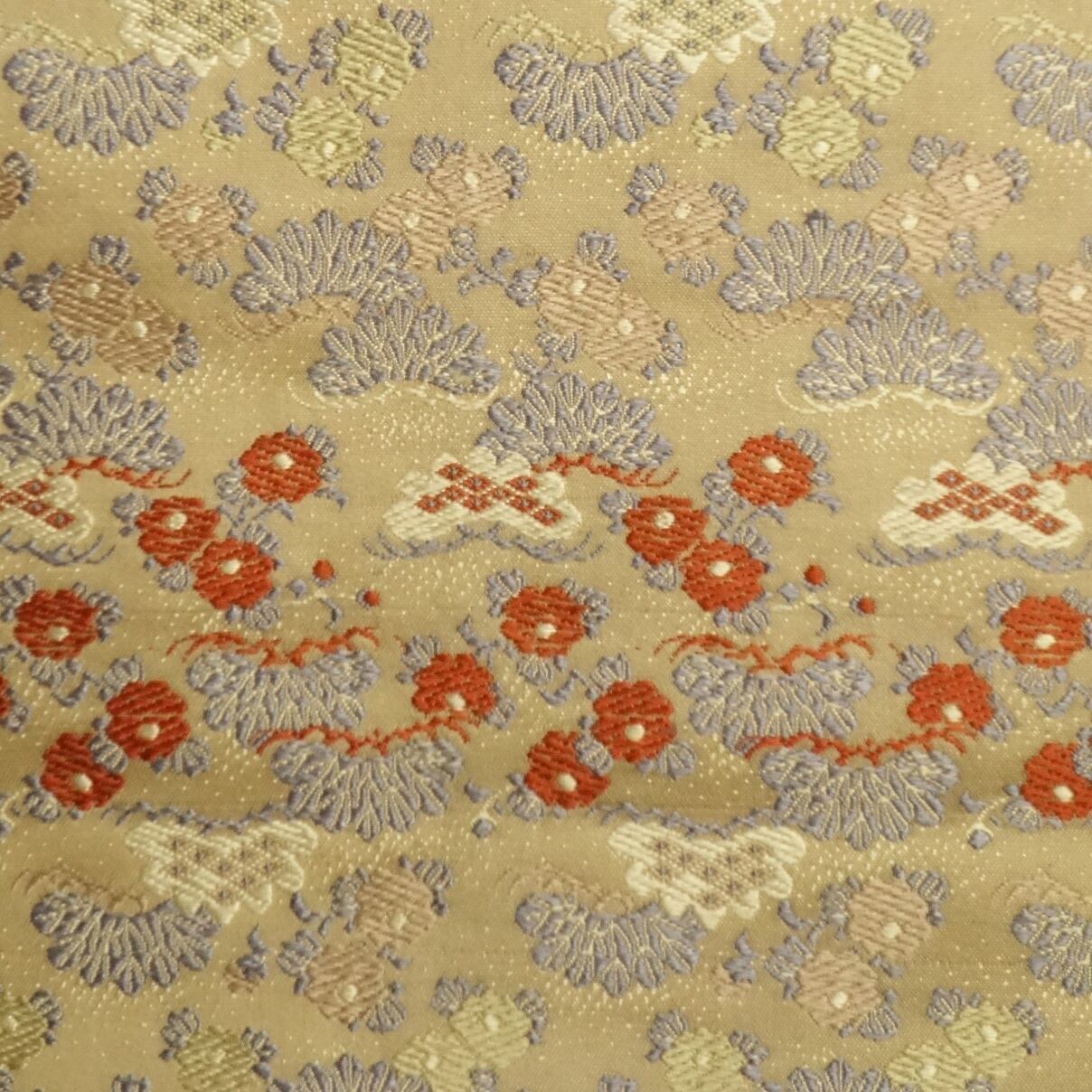 帯は、松に小菊で赤が入った明治時代のレアな帯地を使用しています。