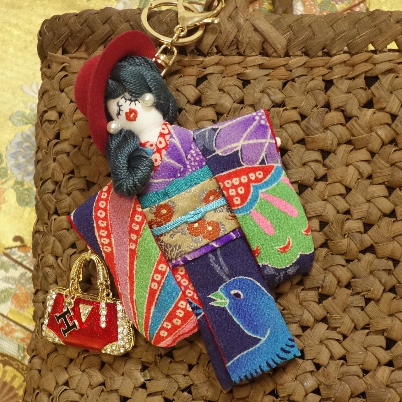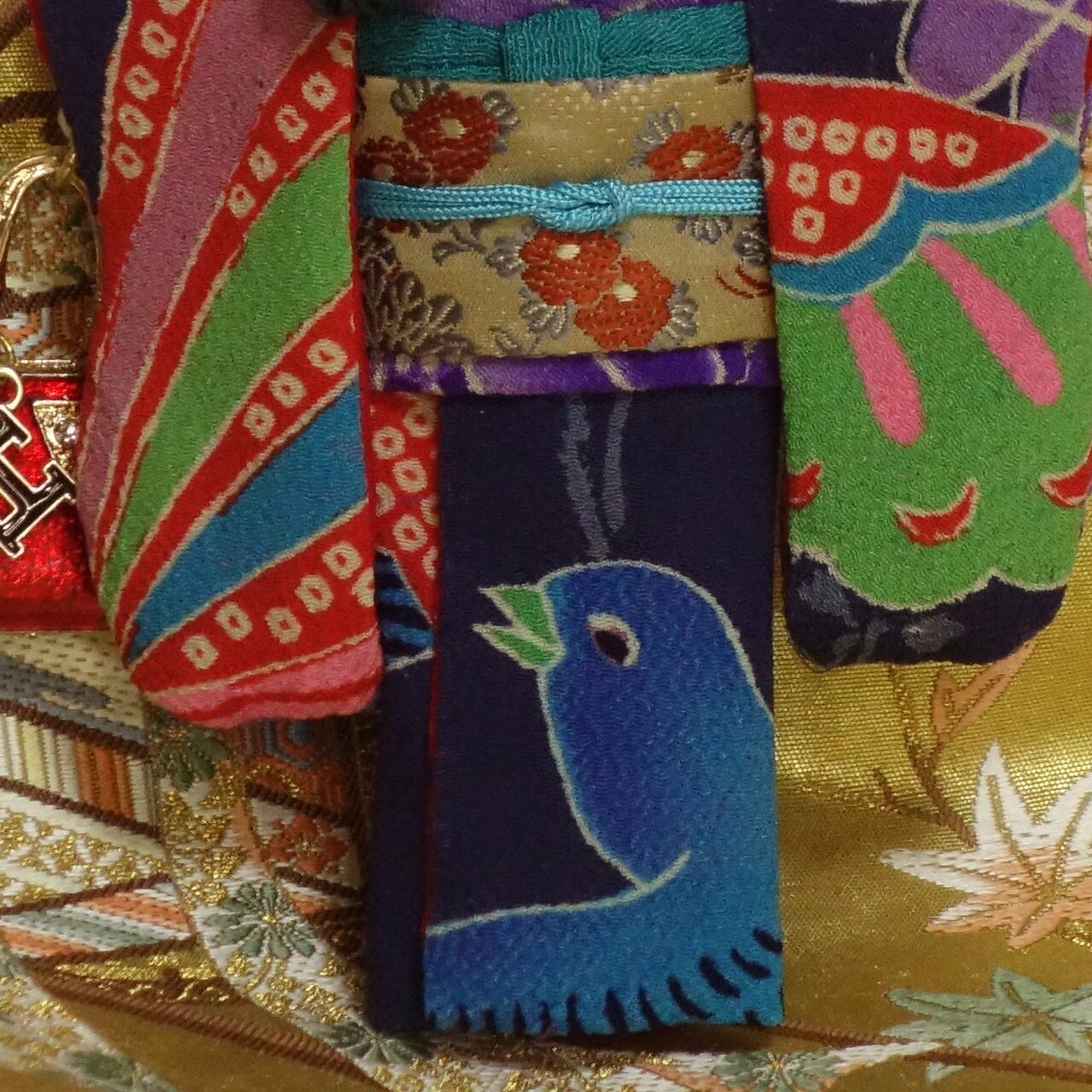 着物は大正縮緬の正絹古布を使用し手縫いで作成しています。
